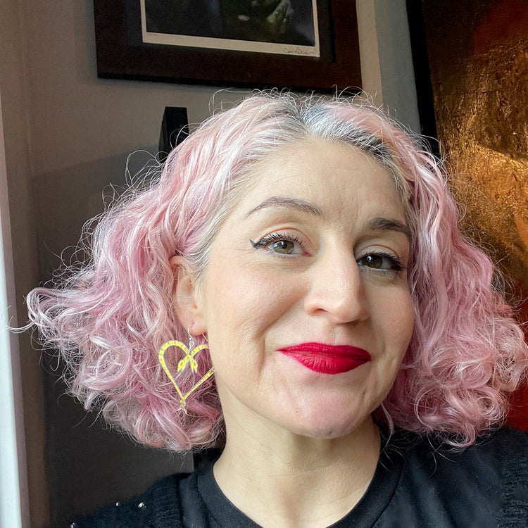 These are so big, bold, abc beautiful! I got the biggest ones in green and love them so much. Even though they’re big, they’re very lightweight. I wore them all day at Pride and was dancing and moving around. At the end of the day, zero pain or discomfort so they’ll definitely be worn lots when I want a statement piece!