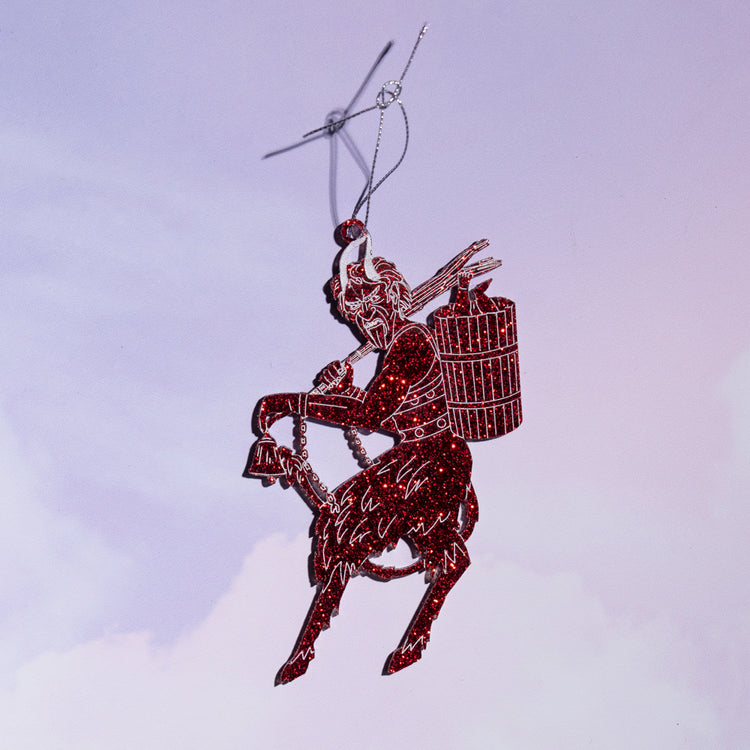 I love this creepy little guy! The silver line work beautifully reflects the holiday lights in my tree. He’s printed on both sides and comes in a lovely box perfect for storage during the Krampus off season. My tree is complete! 🖤