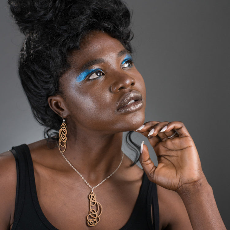 Chunky Black and Wood Statement Necklace - Fat Cap