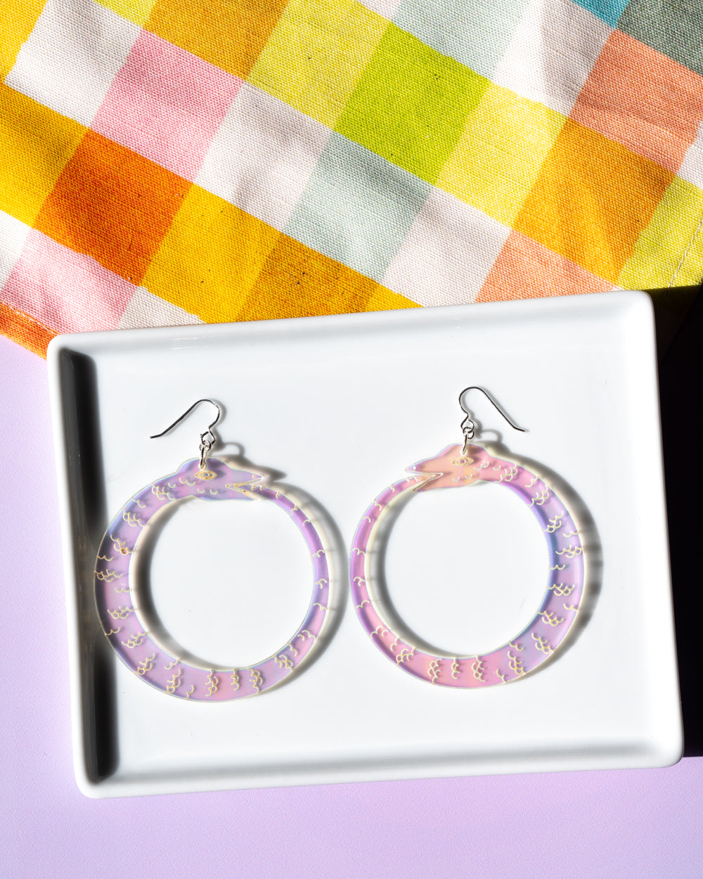 I love the magical iridescence and symbolism of the ouroboros! I don’t usually wear hoops but the small size is perfect.