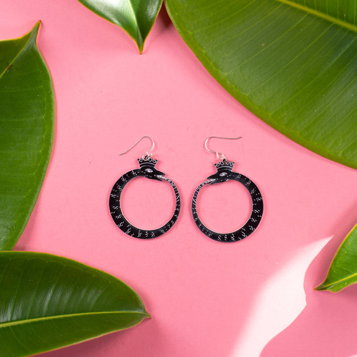 Large Black Ouroboros Earrings