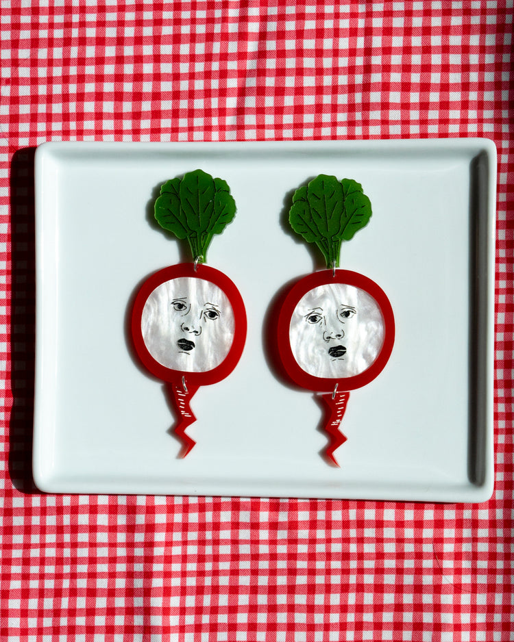 Show off your style at the farmer's market with these sad radish earrings swinging from your ears.